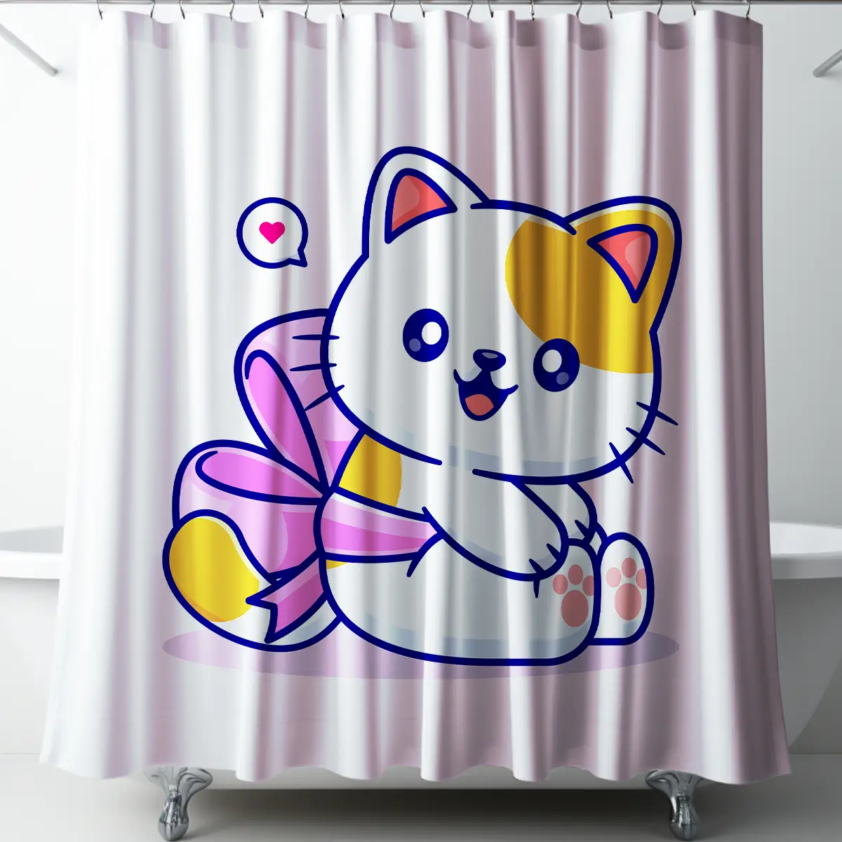 Cute Kitten with Bow Shower Curtain for Kids
