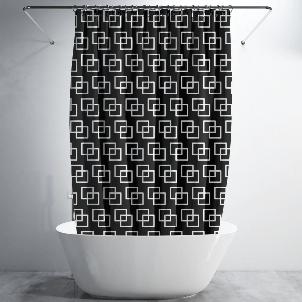 Geometric Squares Black Shower Curtain