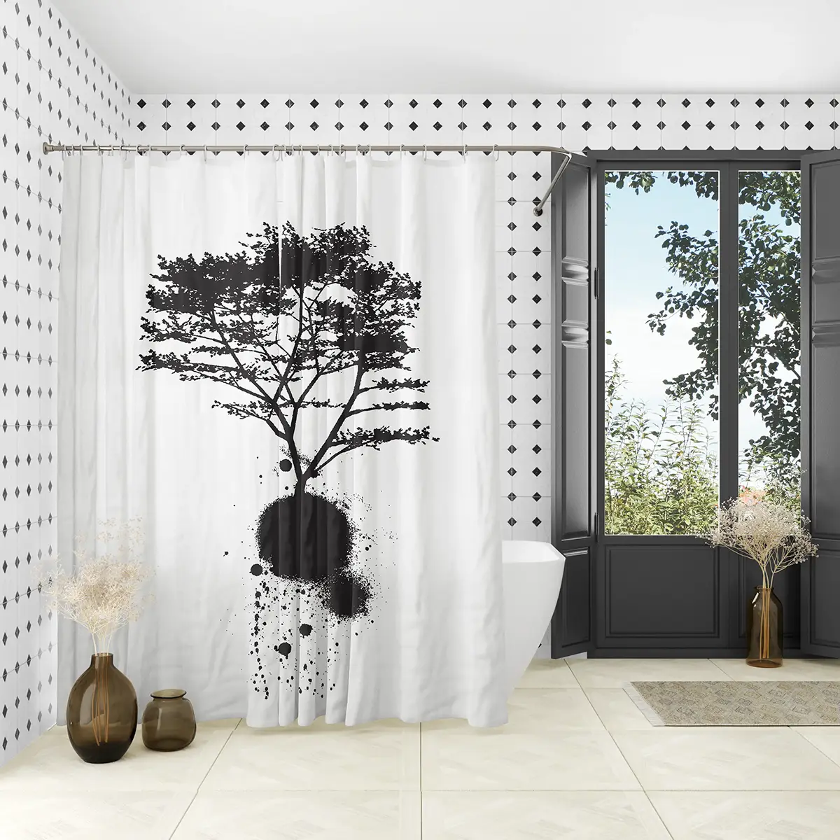 Ink Splash Tree Art Shower Curtain