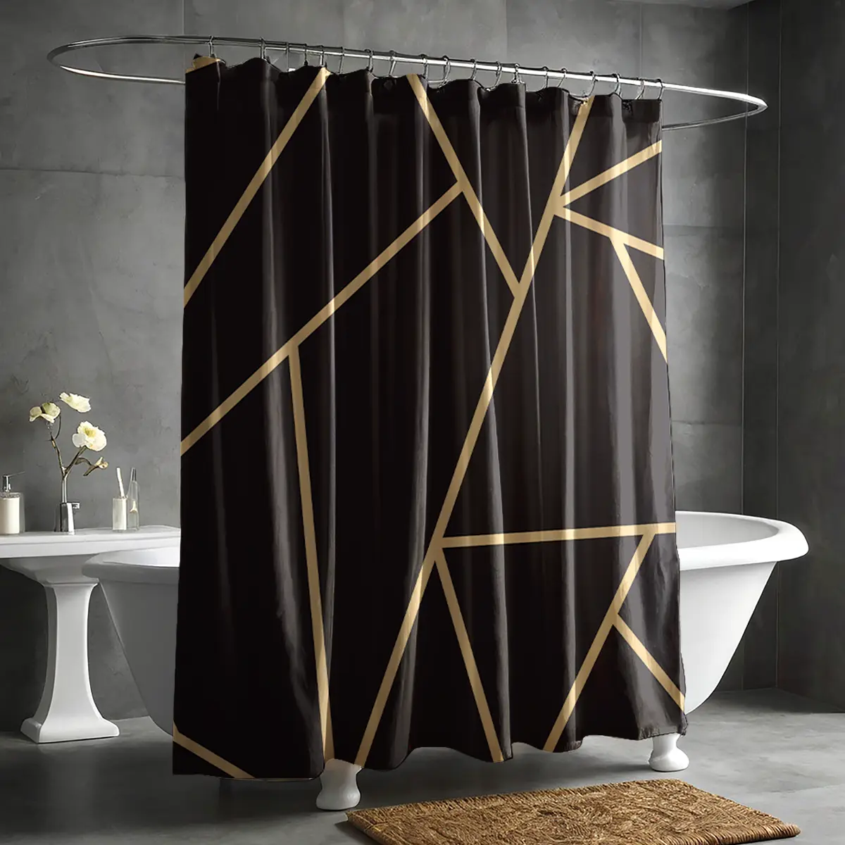 Elegant Gold Geometric Black Shower Curtain